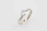 This simple white gold band carries the customer’s existing diamond, which we bezel set. A perfect, simple engagement ring to suit any tastes!