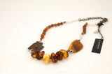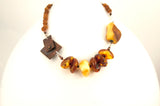 "Oh thing of beauty amber thou art," who doesn't love the feel of amber against your skin! It is feather light and warms up to the touch. Our amber is from the Baltic Sea in Poland known as some of the best amber in the world. The small frosted , hand knotted raw amber organic beads are very unusual, joined with mixed panels of sterling silver and antiqued bronze chain.