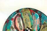 Karyn achieved this vibrant piece of art by painting colourful layers of acrylic paint with overlaying layers of resin. She then etched into the paint with carving tools, tongue in cheek images like a wedding, a moving van and money - all the typical topics of a fortune teller!