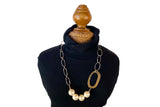 A harmonious blend of city sophistication and nature’s charm, the Central Park Necklace features sterling silver and bronze components. The bronze ‘O’ is imprinted with the texture of a real leaf, rolled through a mill to capture nature’s artistry. Chunky pearls and a hand-forged sterling silver chain add a touch of big-city elegance, evoking the feeling of walking through Central Park in the fall, where city meets the forest floor. This piece is a true wearable work of art.