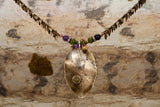 Step into the **Enchanted Woods** with this stunning necklace featuring a faceted Moss Agate cabochon at it’s heart accented with vibrant Amethyst and jade beads, bringing together the serene hues of nature.