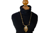 Hand-forged sterling silver and bronze leaves elegantly frame the design, while a flowing bronze leaf chain adding a touch of organic beauty.
