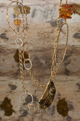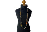 Accented with citrine and moonstone beads this piece exudes effortless style and sophistication. Whether paired with a chic dress for a night out or your favorite jeans and chunky-heeled boots, it brings a bold, fashion-forward edge to any look.