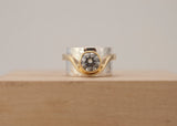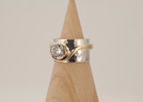Our ball peen hammer textured band with a thick sculptural forged wire and a bedazzling huge Cubic Zirconia says it all...Simply Divine dharlings!!