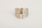 The Thing Of Beauty sterling silver ring has a soft matte finish. It is a beautiful contrast to the high polish bronze features and the even more luxurious high polish interior. It is hand forged using heavy sterling silver sheet (1.3mm thick) The overall look is very sophisticated with superior craftsmanship and design.